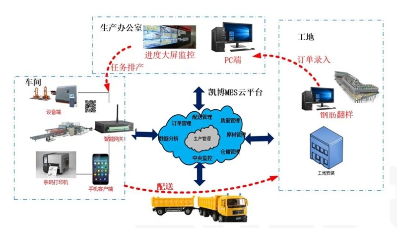 并且,凱博科技攜手中國鐵道科學(xué)研究院集團(tuán)有限公司,開發(fā)凱博鋼筋加工管理軟件系統(tǒng)和鋼筋加工遠(yuǎn)程控制系統(tǒng),打造智能控制中心。鋼筋加工管理軟件系統(tǒng)以鋼筋加工過程中物資流管理為核心,借助工業(yè)互聯(lián)網(wǎng)、云服務(wù)、智能設(shè)備等技術(shù)手段,實(shí)現(xiàn)多項(xiàng)目多任務(wù)遠(yuǎn)程訂單管理,實(shí)現(xiàn)訂單排產(chǎn)、生產(chǎn)訂單分發(fā)、生產(chǎn)標(biāo)牌打印、成品完成報(bào)工,成品出入庫等功能,同時(shí)能夠以電子大屏實(shí)現(xiàn)項(xiàng)目訂單動(dòng)態(tài)實(shí)時(shí)監(jiān)控、加工廠整體運(yùn)營狀態(tài)的中心化顯示。鋼筋加工遠(yuǎn)程控制系統(tǒng),可實(shí)時(shí)顯示加工場(chǎng)各種設(shè)備生產(chǎn)狀態(tài),同時(shí)實(shí)現(xiàn)中控室對(duì)現(xiàn)場(chǎng)設(shè)備啟動(dòng)和停止的遠(yuǎn)程控制,造就了高鐵梁場(chǎng)鋼筋加工數(shù)字化新模式!