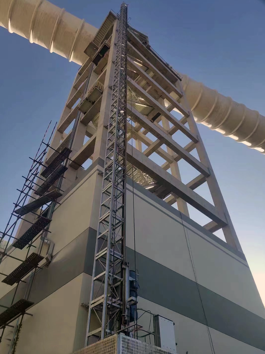 廊坊凱博建設機械科技有限公司(以下簡稱:凱博科技)是中國建研院下屬北京建筑機械化研究院有限公司的全資子企業(yè)(三級中央企業(yè)),齒輪齒條式工業(yè)升降機在具有挑戰(zhàn)性的環(huán)境下也能為用戶提供安全可靠、運行高效的垂直升降設備,為工業(yè)設備的維護、維修提供快速通道。京秦熱電項目是國家鼓勵發(fā)展的熱電聯(lián)產(chǎn)項目、是城市集中供熱民生工程項目、是促進京津冀協(xié)同發(fā)展典型的傳統(tǒng)產(chǎn)業(yè)轉型升級項目。凱博科技提供了兩臺SC100煙道CEMS平臺工業(yè)升降機,為檢測人員到達煙氣監(jiān)測平臺提供便利。
