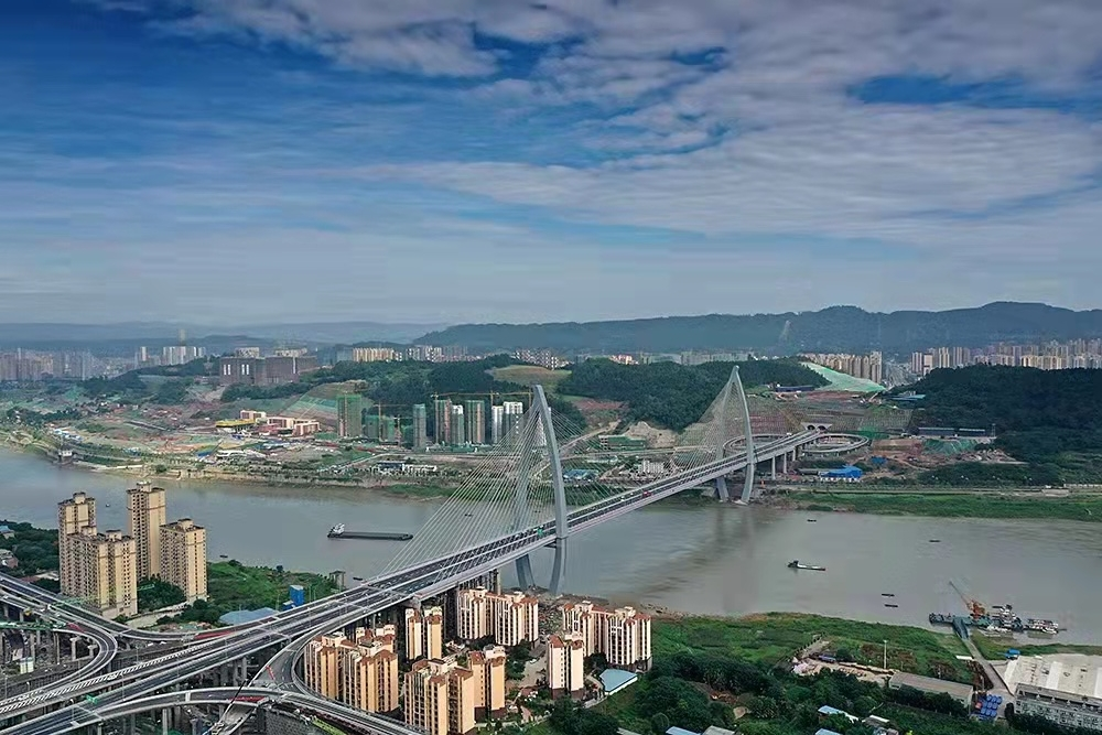 四川宜賓鹽坪壩長(zhǎng)江大橋是宜賓市城市內(nèi)環(huán)線的重要跨江節(jié)點(diǎn)工程,也是宜賓目前體量最大的橋梁。索塔是全國(guó)首次采用的“魚(yú)躍長(zhǎng)江”造型,猶如一條躍出水面、向上飛騰的江魚(yú)。